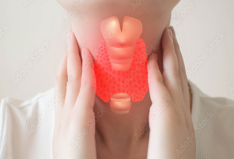 のどぼとけの下あたりにある甲状腺自体がわずかに腫れることが多いです。